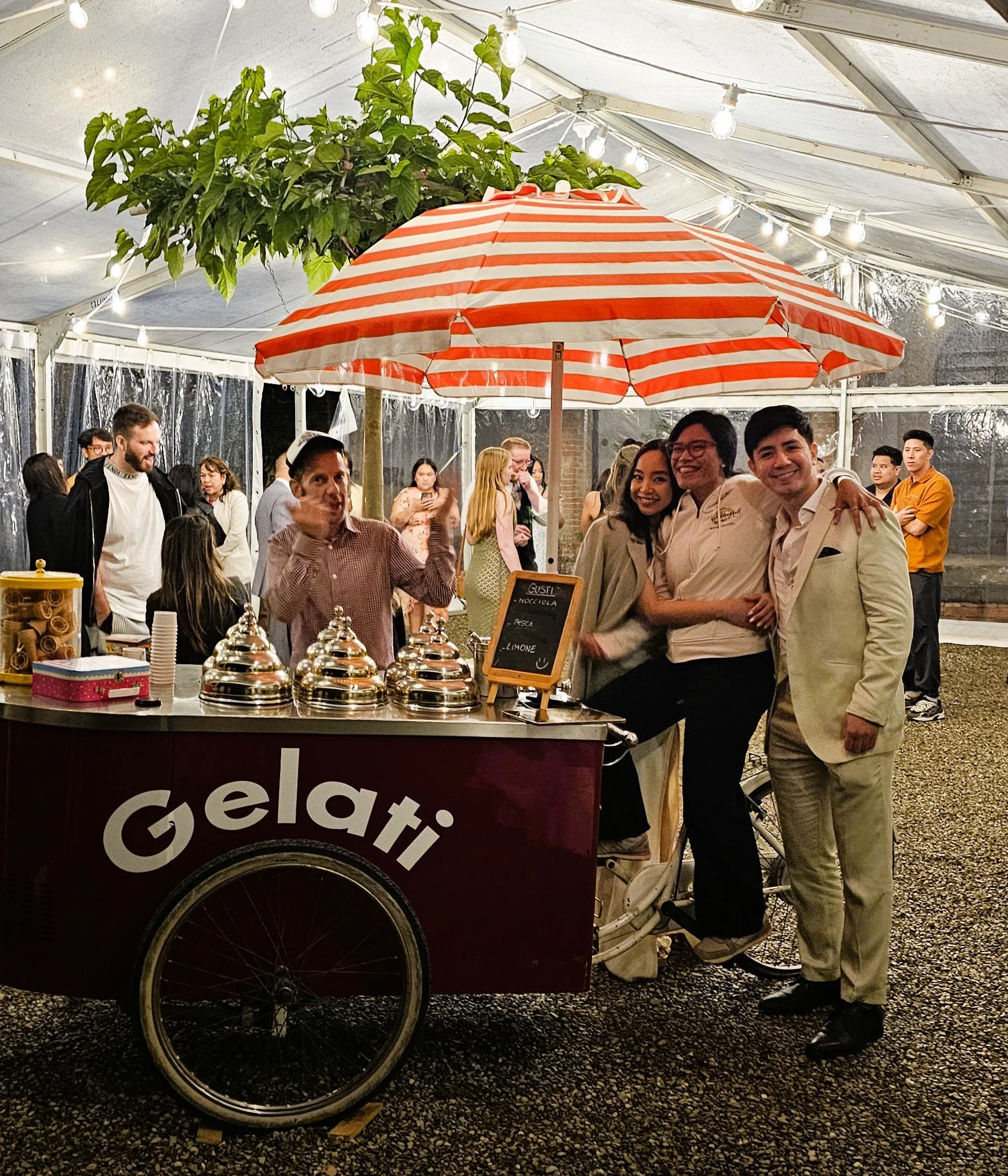 The festivities commenced with an inviting Italian tradition: pizza and gelato. Guests were welcomed by the enchanting Castello di Montalto, a castle wedding venue that promised an unforgettable experience. As they mingled beneath the starry Tuscan sky, the aroma of freshly baked pizza and the sweet, creamy delights of gelato beautifully served by Fabio’s gelato truck, set the stage for the days ahead.